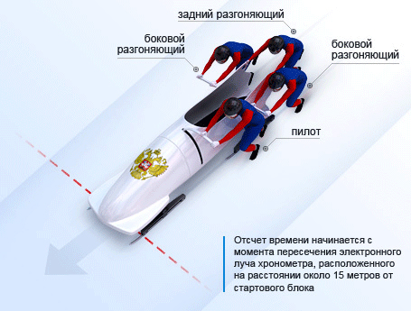 Чтобы выиграть соревнования, экипаж с быстрым бобом должен обеспечить хороший старт, который задаст и скорость, и инерцию. В распоряжении экипажа - примерно 50 м, чтобы привести боб в движение и достичь скорости около 40 км/ч.